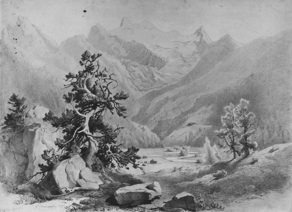 Anton Karinger: Alpska dolina z borovcem, 1860−1870