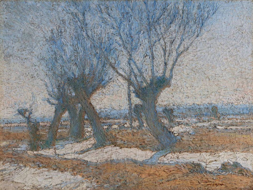V izrazito lirično podobo je ujel skupino vrb Matija Jama. Ob zaraščenem jarku v vrsto posajene vrbe se z debli, nagnjenimi v različne smeri, in razvejanimi golimi krošnjami hrepeneče poganjajo k nebu. Vsidrane v brežino, deloma pokrito s snegom, stegujejo veje k soncu. Najsi je Jama še tako vztrajno vzdrževal razumsko distanco v svoji osredotočenosti na učinke specifične dnevne svetlobe, čustvenih dejavnikov ni mogel izslikati iz podobe.