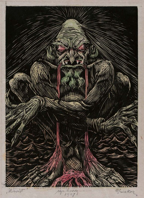 grozljiva fantastična upodobitev enega izmed naglavnih grehov, Zavisti,