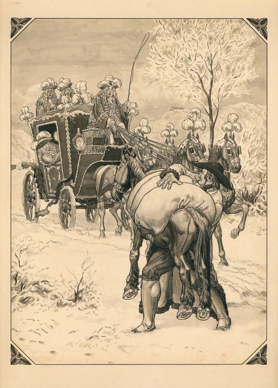 grafitom, ki jo je nato prevlekel in dovršil s tušem. Risba s tušem in peresom