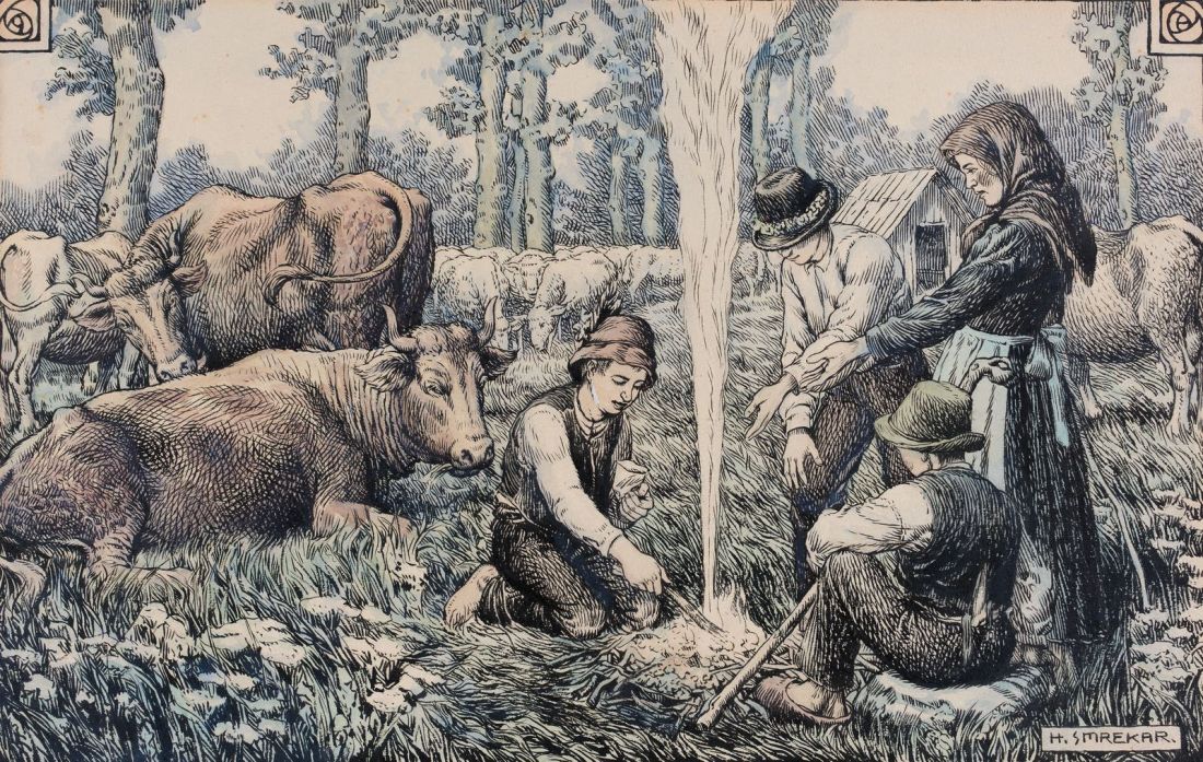 prizori iz ljudskega vraževerja in narodnih bajk, risbe za zdravnika dr. Franca