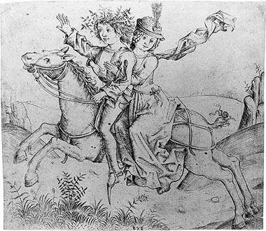 Če je bilo za dvorsko ljubezen (‘minne’) v literaturi 12. stoletja značilno idealizirano čaščenje žensk, se je to proti koncu srednjega veka spremenilo v umetnost galantnega osvajanja. Strastno zaljubljen moški je postal nor od ljubezni, lepa ženska pa simbol čutne sle in njene moči. V 15. stoletju se je tudi likovna umetnost vedno bolj posvečala temi nespameti zaradi ljubezni, pri čemer je prevzela motive dvorske ljubezni (‘minne’) in jih neredko parodirala.
