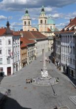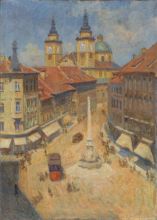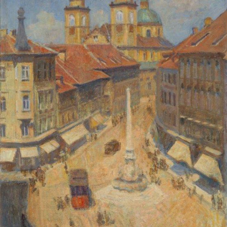 Med letoma 1929 in 1935 je Matija Jama stanoval v Souvanovi hiši na Mestnem trgu v Ljubljani. Šenklavški motiv se mu je odpiral ob pogledu skozi okno iz mansardnega ateljeja v petem nadstropju. Iz te perspektive je nastajala serija podob, v katerih je slikar združeval tri pomembne mestne spomenike − Rotovž, Robbov vodnjak in zahodno pročelje baročne stolnice z mogočnima zvonikoma. Od devetih različic, kolikor jih je mogoče danes prepoznati iz dokumentacije, je razlika med formatom najmanjše (Umetnostna galerija Maribor) in največje (Narodna galerija) kar dvakratna (od približno 60 x 40 do 120 x 80 cm). Kompozicijske razlike v seriji slik so malenkostne.
