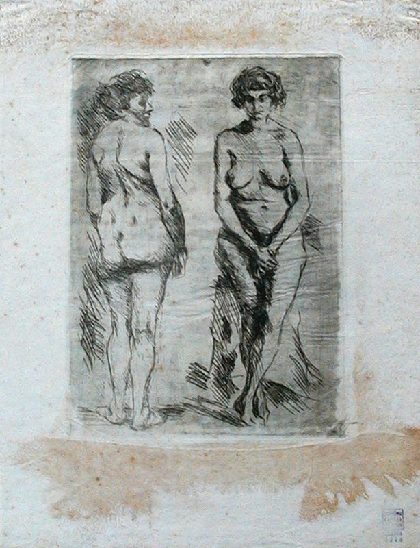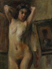 Že najzgodnejše fotografije lahko povežemo s konkretnimi deli iz Sternenovega opusa. Neizogibno prepoznaven je akt z dvignjenimi rokami, ki ga celopostavnega najdemo tudi v grafični izvedbi. Fotografska plošča je zanimiva predvsem zato, ker na levi strani za zastorom lahko poškilimo v Ažbetovo risalnico, kjer stoji štafelaj pred steno s slikami. Tudi Akt s hrbtne strani je bil posnet na istem mestu, k njima pa lahko prištejemo še nekaj drugih fotografij. Fotografije so praviloma obrezane, omejene predvsem na figuro, tako da je kontekst povsem izgubljen, kar nam zelo jasno razodene slikarjev neposredni interes v fotografiji. Še bolj zgovorni so nekateri primerki v Moderni galeriji, kjer je fotografijo preganil po vseh štirih robovih in tako določil kader kompozicije.