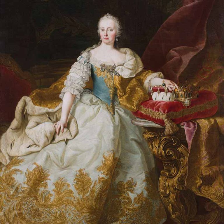 stoletja, s čimer se ujema tudi mladostni videz Marije Terezije. Stoji ob