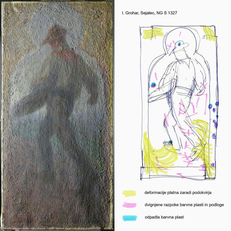 na sprijetost obeh barvnih plasti. Ob prvem pregledu umetnine smo se odločili