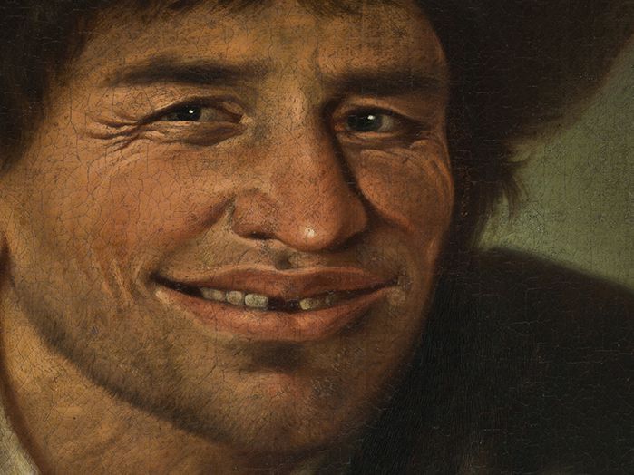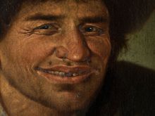 vtis, da ima možak, ki drži v roki presto, kožno bolezen. Ogled slike Prestar v živo je razkril, da črne pike na