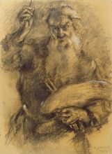 Rihard Jakopič (1869–1943) je gigantska figura slovenskega zgodnjega modernizma. Svoj mitični status je vzpostavil z družbenopolitičnim delovanjem, ki je vodilo do izgradnje prvega javnega razstavnega prostora na Slovenskem leta 1909, do rednega razstavnega programa v njem, do neformalne organizacije slovenskih umetnikov v Klubu Sava po tem, ko je društvo klavrno propadlo, do vzpostavljanja mednarodnih povezav, obvladoval je tedaj v plenicah jokajoči umetnostni trg itd. Zato so ga v karikaturah upodabljali kot Boga Očeta in Mojzesa ali kot vojskovodjo na čelu falange slovenskih umetnikov, ki vihté čopič in paleto kot sulico in ščit. Po prvi svetovni vojni se nobena kulturna manifestacija ni mogla odviti brez njega. Bil je med pobudniki ustanovitve Narodne galerije, svetniški patron novomeške pomladi, gromovnik v boju za družbeni status umetnikov in je bil vnebovzet v Slovensko akademijo znanosti in umetnosti ob ustanovitvi leta 1938.