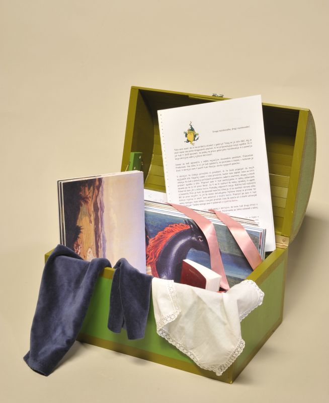 Gal je v zeleno leseno skrinjico spravil drobne dragocenosti, sestavljanke, raziskovalni vodnik in pismo, v katerem otroke in družine vabi k samostojnemu odkrivanju Galovih najljubših slik. Čaka vas imenitna Galova pustolovščina za vso družino!
