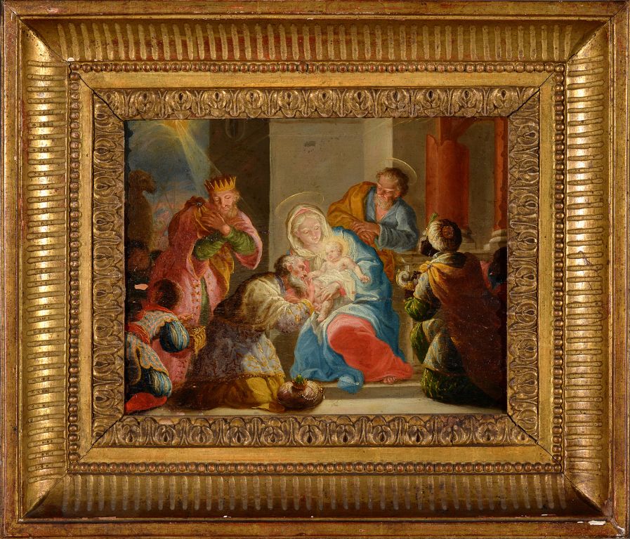 Poklon Sv. treh kraljev na platnu majhnega formata je Unterberger naslikal verjetno okoli leta 1750, v svojem dunajskem obdobju, kar potrjuje napis na hrbtni strani slike.