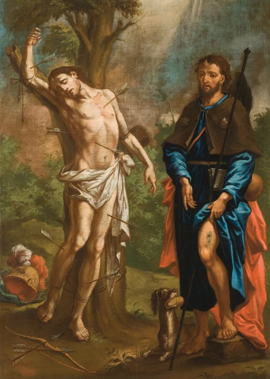 Podoba je naslikana na licu bandera. Bandero je cerkvena zastava, ki je imela v blago všito platno poslikano z obeh strani in so jo nosili v prazničnih procesijah. Na hrbtni strani bandera pa sta naslikana Sv. Boštjan in Sv. Rok, zavetnika zoper kužne bolezni.