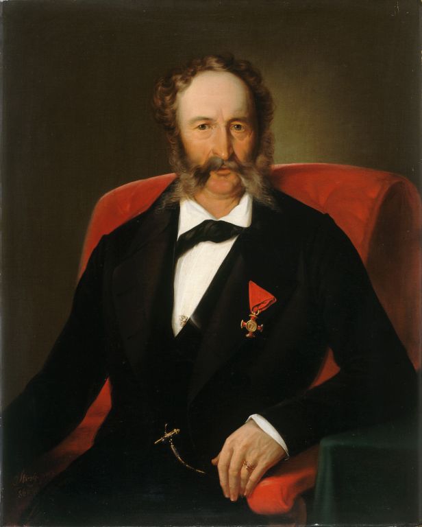 Stroj je upodobil ponosnega, samozavestnega moškega pri šestdesetih letih. Pred slikarja je stopil okrašen z odlikovanjem Franca Jožefa. Klišejsko kompozicijo sta obogatila realistično zajet obraz s poudarjenimi gubami in roka, ki jo komaj prepoznamo kot Strojevo, saj se umika od uveljavljenega tipa. Obrazne partije so modelirane občutljivo, z mehkimi prehodi v senčenju inkarnata.