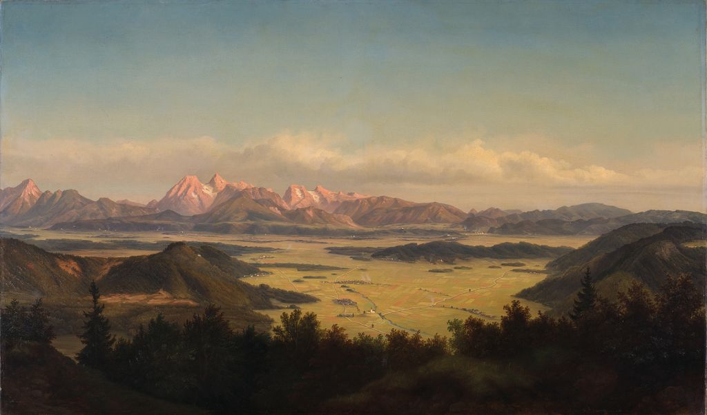 Vse štiri slike so sestavljene na enak način: prek temnega in ozkega sprednjega plana se v svetlih okrastih in zelenih odtenkih razliva osončena pokrajina pod Šmarno goro. Kraje, ki jih je Pernhart prikazal s topografsko natančnostjo, še danes lahko prepoznamo. Pernhartove panorame so monumentalni poliptihi neokrnjene narave, ki jo je začel človek na novo odkrivati in obvladovati v obdobju razvijajočega se turizma in naraščajočega antropocentrizma. Pogled proti severu. Na sredi na ravnini vas Skaručna, proti levi si po diagonali v ozadje sledijo Vodice, Strmol, Velesovo in skrajno levo Preddvor. Od Skaručne naravnost proti ozadju Tunjice, pobočje Velike planine, Sv. Primož nad Kamnikom in spredaj Kamnik. Na levi strani slike v ozadju so vrhovi nad Preddvorom s Storžičem in Zaplato, sledita najvišja Kočna in Grintovec, pred njim Kalška gora in Krvavec. Dalje od Grintavca se lepo vidi Kamniško sedlo in nad njim Planjava, Ojstrica, Lučki dedec, Veliki vrh, Rogatec, Golte, Menina planina.