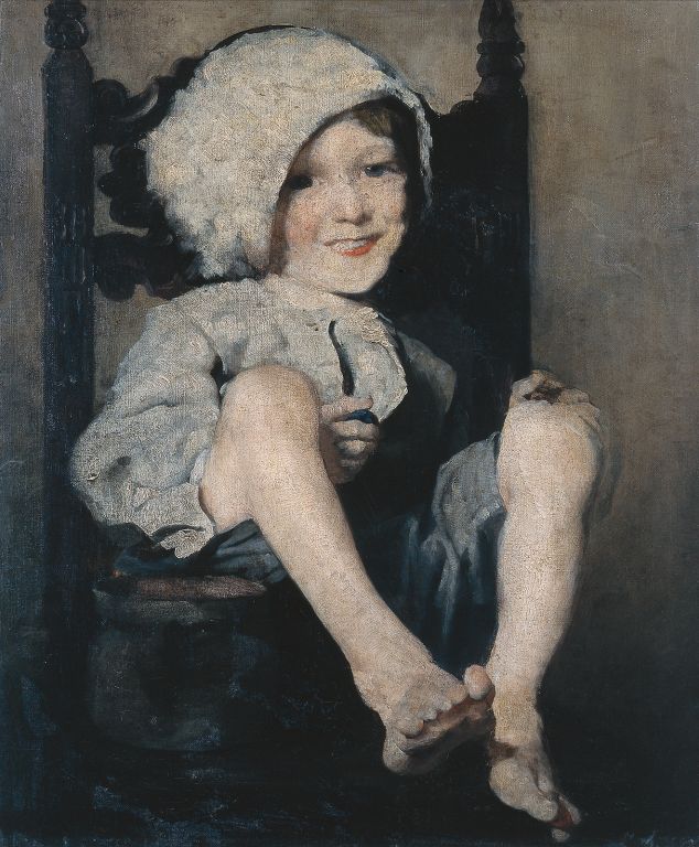 Portret z anekdotično poanto je nastal v času, ko je Vesel prešel od slikanja glav k celopostavni figuri, sprva še v omejenem prostoru. Dečka je zajel v sproščenem gibu, ki izraža otroškost in daje sliki globinsko razsežnost. V umirjeni tonaliteti in skrbni modelaciji je Vesel ostal vezan na ateljejsko tradicijo slikanja.