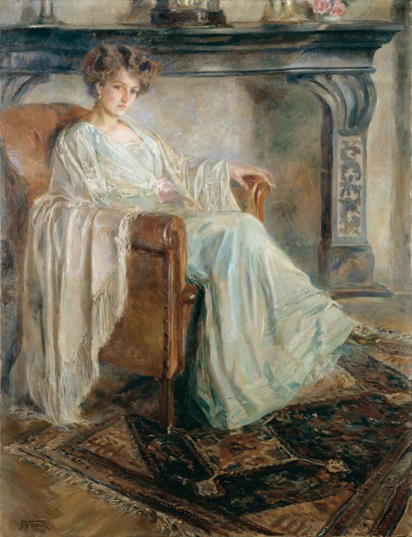 Slika sodi med prve Vavpotičeve uspešnejše ljubljanske reprezentativne meščanske portrete. Celopostavno upodobljenko iz bogate trgovske družine predstavlja v lepi, a nekoliko vzvišeni hladnosti, v fotelju in ob kaminu, z odmaknjenim pogledom in iz spoštljive razdalje, ki jo umešča v ambient s preprogo; njeni aristokratski zadržanosti se lepo prilega tudi barvna zadržanost. Značilen za Vavpotiča je interes za sijaj draperije, njene materialnosti in barvnih odtenkov.
