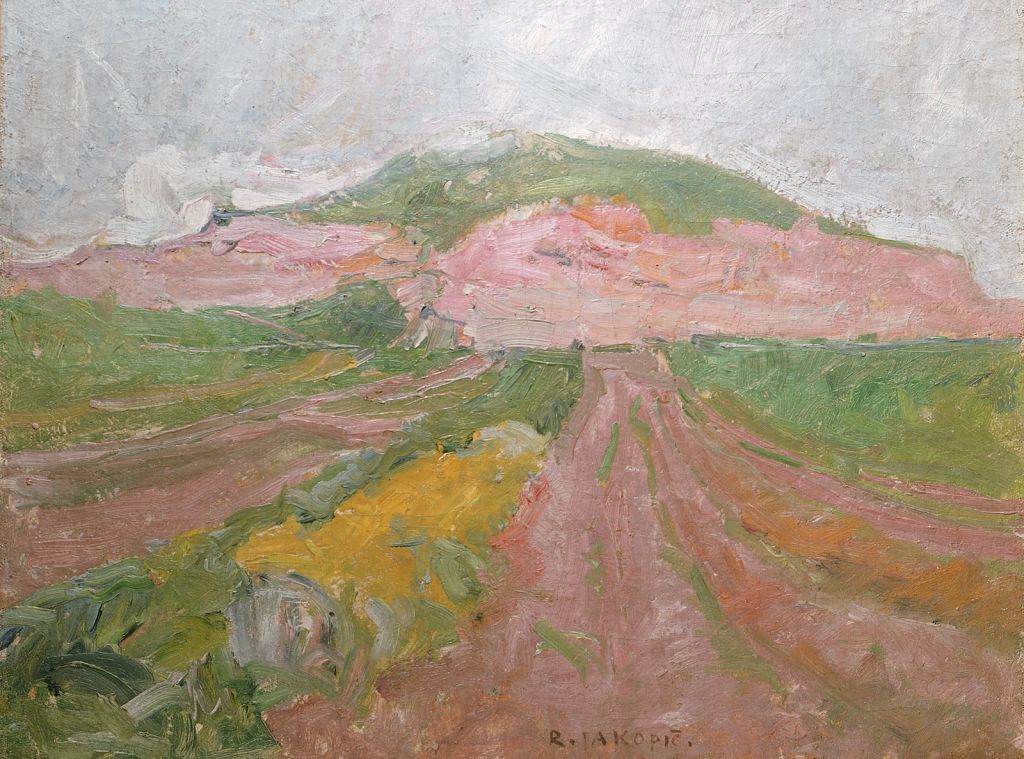 Pot ali njiva, ki se poglablja naravnost proti očišču in jo ustavi grič ali kozolec, je še ena tematska posebnost, ki druži Jakopiča, Sternena in fotografa Avgusta Bertholda. Kamnitnik v dežju je spomladanska različica zimskega motiva, ki je verjetno nastal kot Jakopičeva prva reakcija na razstavo Impresionizem v slikarstvu in kiparstvu; v njej je skušal rekonstruirati Monetovo improvizirano tehniko iz devetdesetih let 19. stoletja. Slikanje s čopičem namesto z lopatico združuje posamezne barve − rožnato, zeleno in rumeno − pod sivomodrim poveznjenim nebom Kamnitnika v dežju v bolj poenotena območja. Razburjena faktura deluje kot nekakšen rokopis, sled energije, ki se preko čopiča pretaka na platno. Slika je dober primer izbire orodja v skladu z umetnikovo intenco. Jakopič je ustvaril občutje razmočene pokrajine v pomladanski plohi ter tako podal še eno "štimungo", cilj, ki ga je sistematično zasledoval v loškem obdobju ter iskal za to primerna sredstva.