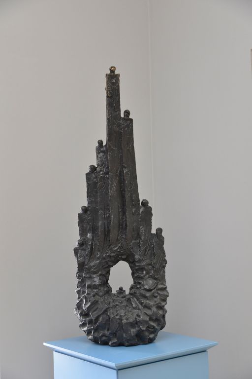 Vsebinsko delo predstavlja družbeno množico velikih in enako pomembnih malih človeških figur, ki so razporejene višje in nižje, formalno se grobo obdelana in slikovito razgibana prevotljena celota koničasto dviguje od tal.