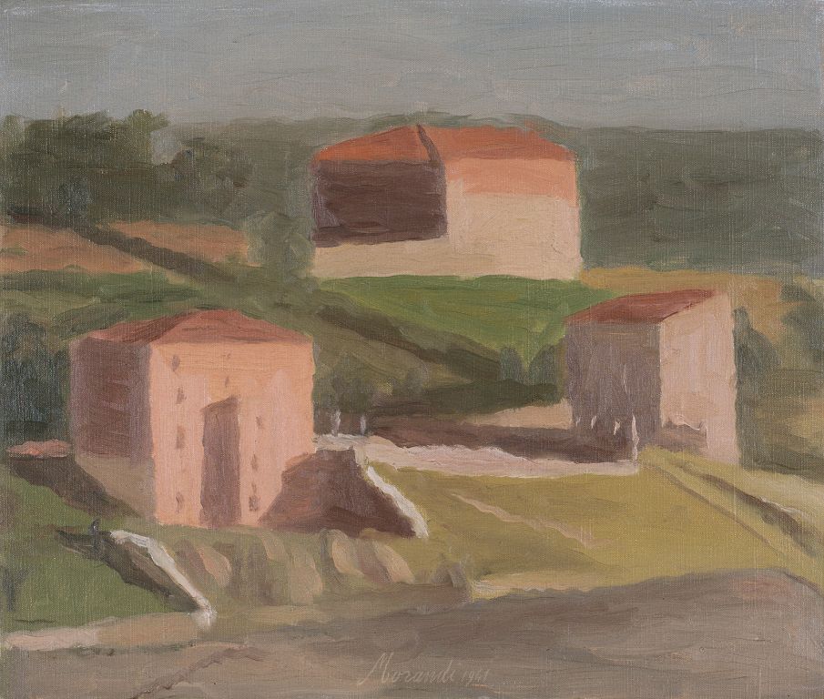 Slika, ki je signirana in datirana spodaj v sredini Morandi 1941, je izvrstno delo vélikega bolonjskega umetnika. Velike hiše na robu Bologne, postavljene na griču, so potopljene v negibno brezčasno svetlobo, ki ne pozna ne zore ne mraka. V popolni tišini živi z notranjim življenjem izredno skrbna poteza s čopičem, ki se omejuje na bistveno in uporablja skrčeno lestvico skladnih rjavih in ugaslih barv.