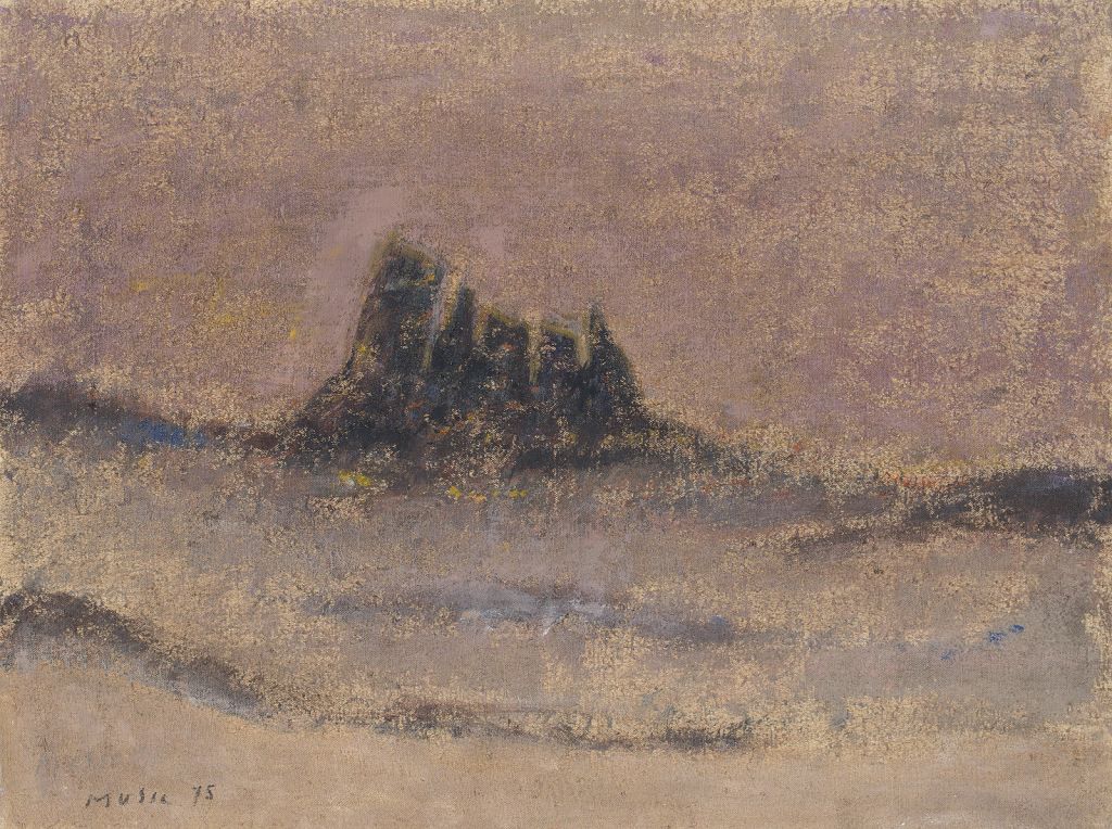 Najprej so ga v šestdesetih letih prevzeli poletni travniki, ki so navdihnili barvne risbe z naslovom Cvetje v Cortini. V sedemdesetih letih, ko se je Mušič soočal s travmami ob slikanju mrličev iz serije Nismo poslednji, se je vračal v Dolomite v iskanju sprostitve. Upodabljal je skalne silhuete značilnih dolomitskih vrhov v večerni svetlobi in meglicah. Očarala ga je predvsem skalna formacija petih kamnitih stolpov Cinque torri v okolici Cortine. V zbirki umetnin, ki jih je podarjal bratu in njegovi družini, so se ohranili slike na platno in grafični listi istih pogledov v tehniki suhe igle.