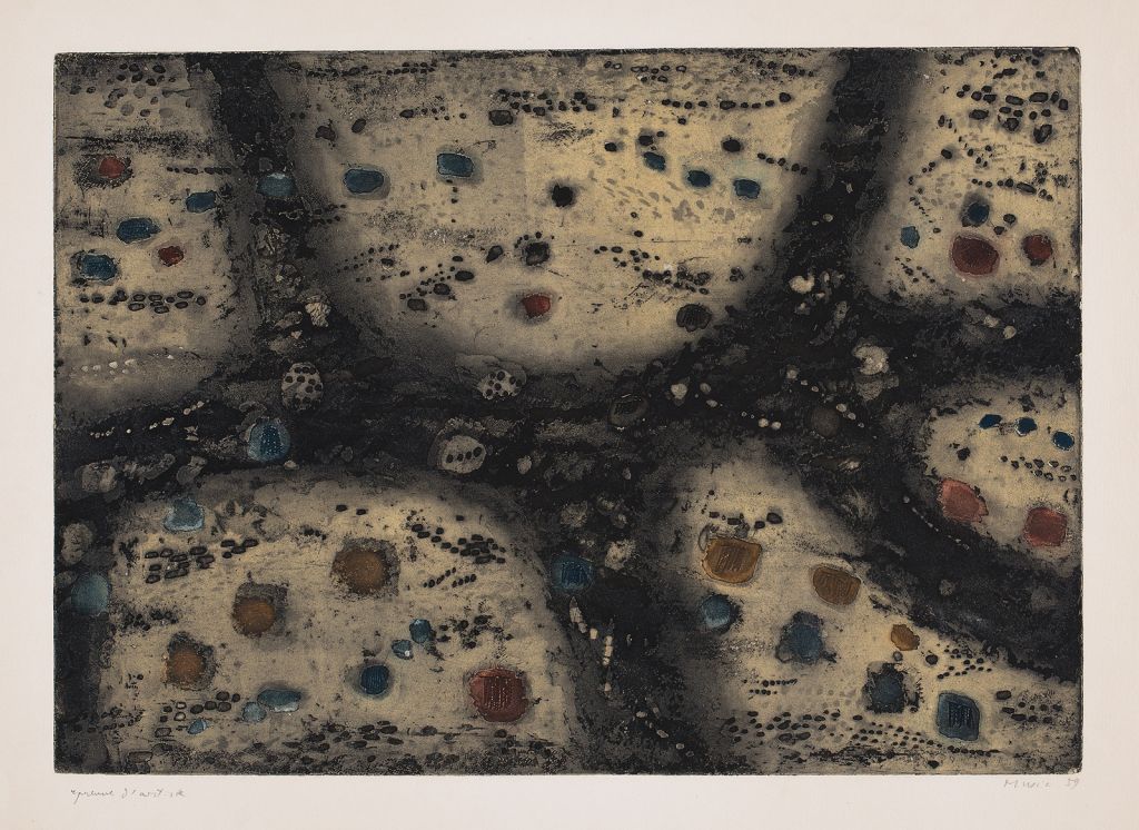 Serijo istrskih in dalmatinskih kraških zemelj je Zoran Mušič ustvari v času življenja v Parizu, ki je bil v petdesetih letih središče nefiguralnega in abstraktnega slikarstva v Evropi.