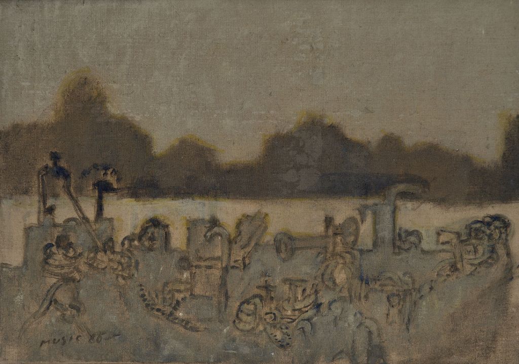 sign. in dat. na hrbtni strani platna: MUSIC / Canale della / Giudecca / olio 1980, na podokvirju l. sp.: 65 x 46