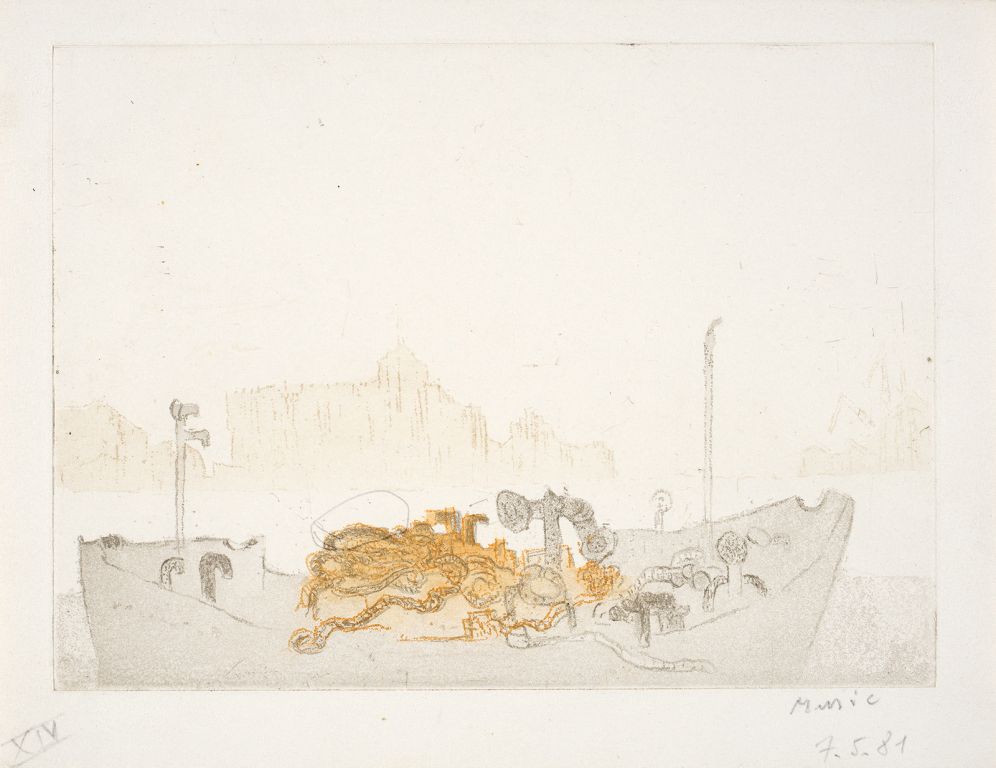 1981, akvatinta, ročno izdelan papir, avtorjeve korekture z grafitom, P. 209 x 287 mm, L 252 x 330 mm