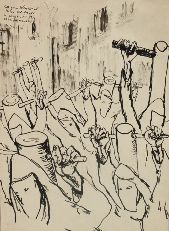 sign. l. zg.: Z. Mušič, l. zg.: Con gran solemnidad ..., na hrbtni strani l. zg.: Los disciplinarios