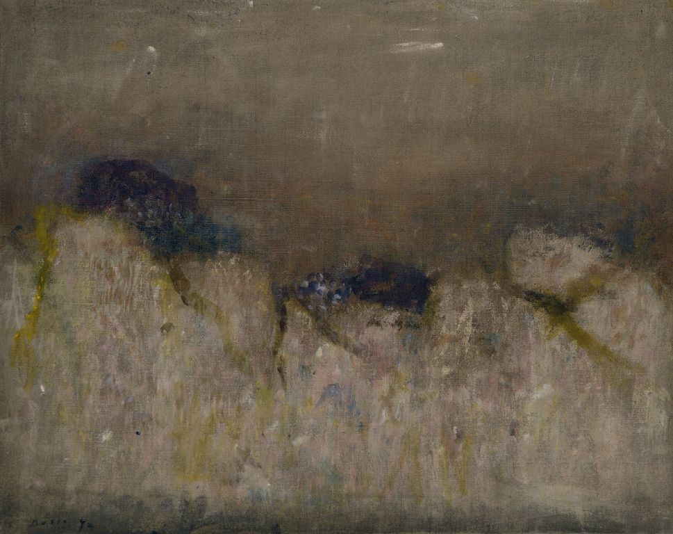 sign. in dat. l. sp.: MUSIC 72, sign. in dat. na hrbtni strani platna: MUSIC 72 / Paesaggio roccioso / 80 x 65