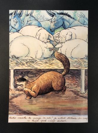 Napis sr. sp.: »Kako smrde te svinje in osli«, je rekel dihur in raz-/ -kužil zrak s svojo dišavo.