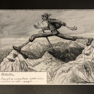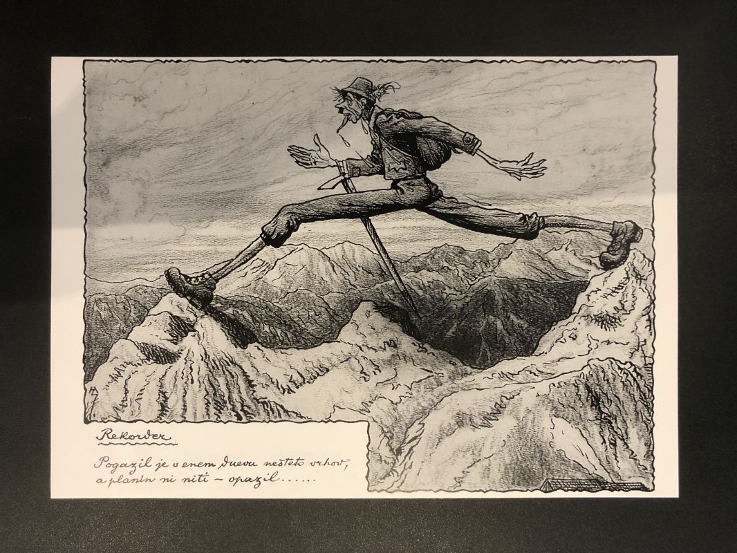 Zapis l. sp.: Rekorder / Pogazil je v enem dnevu nešteto vrhov, / a planin ni niti - opazil ...