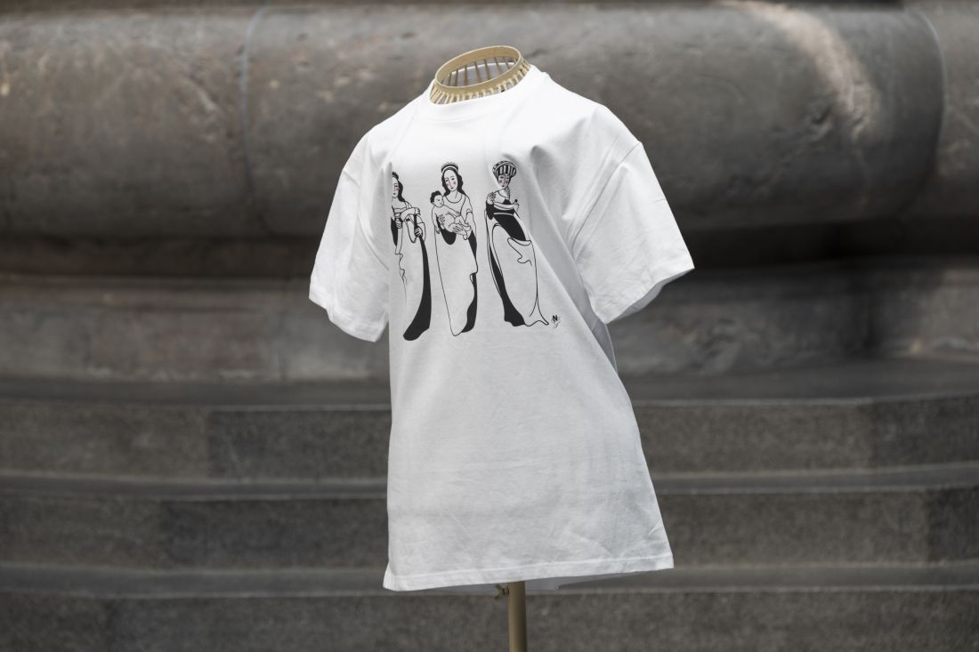 Majica z motivom Tri svetnice združuje gotsko umetnost s sodobnim oblikovanjem. Majica predstavlja sv. Katarino, Marijo z detetom in sv. Magdaleno (iz leve proti desni), hkrati pa jih prenaša v minimalističen, sodoben izraz. Mehka tkanina in skrbno izrisan motiv ustvarjata preplet zgodovine in sodobne estetike – za tiste, ki cenijo brezčasno umetnost v vsakdanjem življenju.