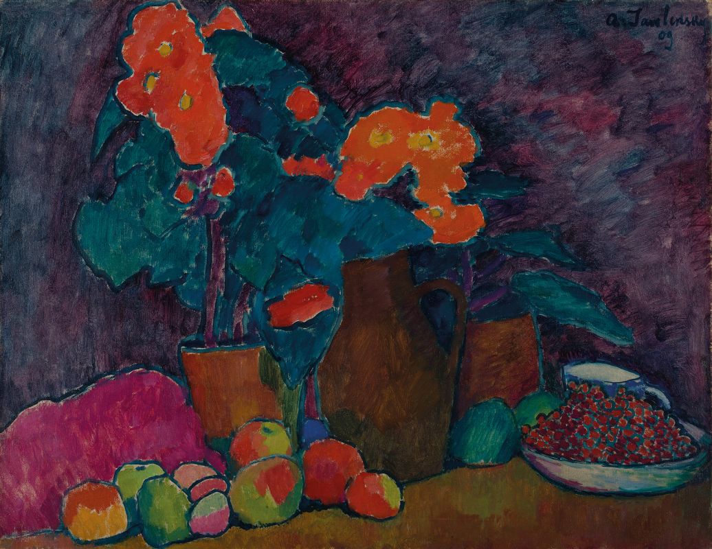 Maska (Alexej von Jawlensky, Cvetje, sadje in vrč, 1909)