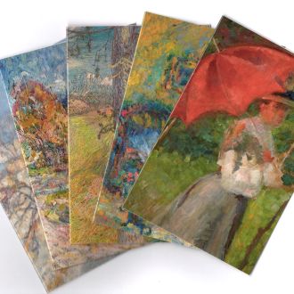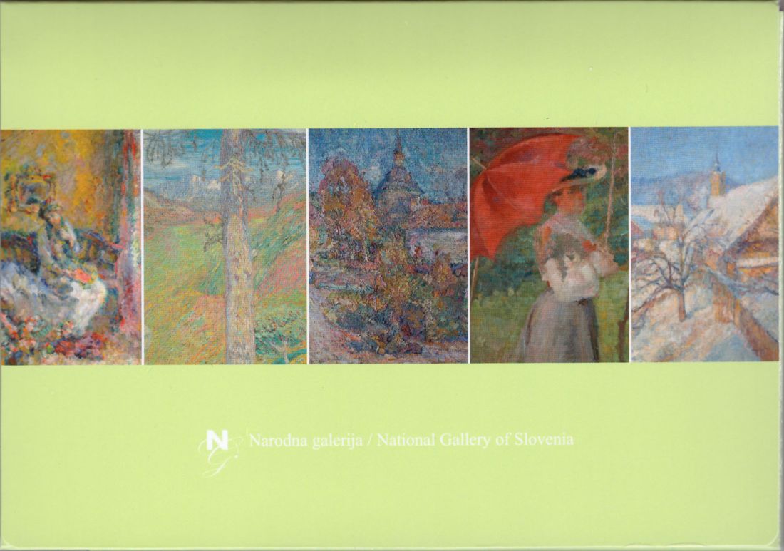Set voščilnic z najlepšimi motivi slovenskih impresionistov, razstavljenimi v Narodni galeriji. Voščilnice so zapakirane v lično škatlico, skupaj s petimi kuvertami.