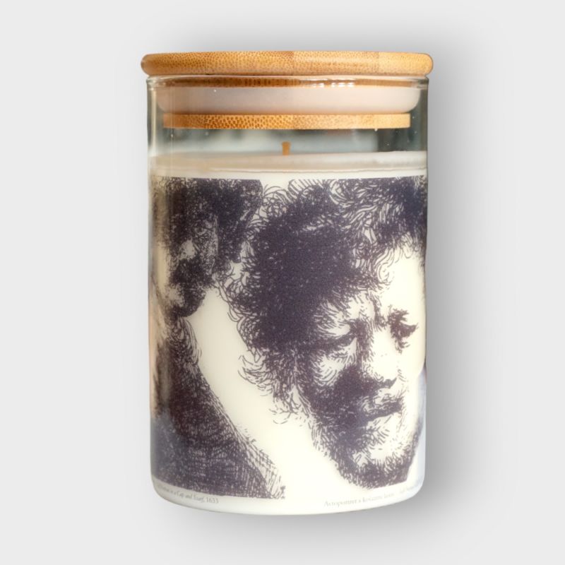 Sveče, več vonjev in velikosti, okrašene z večimi različnimi motivi Rembrandotvih grafik.