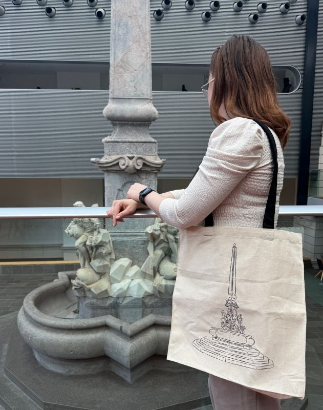 Praktična bombažna vrečka z motivom Robbovega vodnjaka – idealna za vsakodnevne opravke, obisk tržnice ali kulturnih dogodkov. Trpežen material, dolg ročaj in estetski baročni tisk – odlična izbira za ljubitelje umetnosti in trajnostnih izdelkov.
